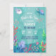 Um belo convite de primeiro aniversario debaixo de água debaixo do mar, com animais do oceano, com cor d'água e corais do mar. O convite perfeito para sua festa de primeiro aniversario. Este convite apresenta tartaruga marinha, polvo, peixes-estrela, peixes com belos corais-marinhos.