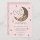 Este chá de fraldas fofo "Sobre a Lua" por convite de correio apresenta um fundo cor-de-rosa/rosa claro pincelado com uma lua e estrelas de lua brilhantes douradas. Altere a cor de fundo e personalize para suas necessidades. Você pode encontrar mais produtos correspondentes na minha loja.
