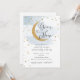 Convites Sobre a Lua Dourada Estrelas Chá de fraldas Azul