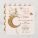 Eles estão sobre a Lua. Um coelho fofo sentado na lua anunciando o chá de uma menina. O verso e a frente do convite é um pano de fundo do mesmo padrão