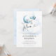 Um doce convite para o chá do bebê do Céu da Lua apresentando uma ilustração aquática de um avião de brinquedo voando sobre uma lua crescente cercada por nuvens fofinhas e estrelas douradas (efeito digital). Perfeito para futuros pais ou uma mamãe que ama o tema da lua, a lua e as estrelas, aviões e temas celestes.