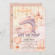 Este convite de chá de fraldas entre vovó e boêmia "estamos sobre a lua" apresenta a lua de cheio, estrelas e nuvens com uma baleia voadora, arraia, tartaruga, balão de ar quente e navio voador em tons cor-de-rosa. O verso apresenta um fundo rosa coral com padrões estelares. Personalize-o para as suas necessidades. Você pode encontrar produtos correspondentes na minha loja.