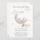 As cores pastéis macios e detalhes intrincados do trabalho de arte de aquarela neste convite a chás de fraldas criam uma atmosfera quente e convidativa, perfeita para celebrar essa ocasião especial. O texto "Estamos sobre a lua" acrescenta um toque de brincadeira e enfatiza o entusiasmo e a felicidade em torno da chegada que se avizinha.
