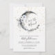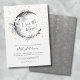 Sobre o convite para Chás de fraldas da Lua. Celebrar um momento mágico com esse tema de chá de fraldas celestial de vô caprichoso. "Sobre a Lua!" é exibido com destaque dentro de uma lua crescente sobre um fundo todo branco. Se você optar por personalizar a cor de fundo, ela terá um efeito gradiente da cor escolhida para baixo para branco na parte inferior. Um olhar elegante, porém brincalhão, com uma lua e estrelas da meia-noite, estrelas do céu, estrelas douradas, flores brancas, penas e outros sotaques que dão um pouco de vibração boêmica. O dorso apresenta uma cor d'água escura e estrelada. A design apresenta coloração em preto, branco, ouro e cinza no seu conjunto. O texto é apresentado em uma mistura elegante de tipografia de script preto e uma letra serif. Este convite é perfeito para celebrar a futura mãe e acrescenta um toque místico ao seu dia especial. Embora seja ideal para um bebê, sua design é versátil o suficiente para ser neutro em relação ao gênero. Uma Simples Na moda Elegante Aquarela Sobre O Convite Para Chá de fraldas Da Lua. Disponível como um convite impresso ou como um convite digital para download que você pode enviar por e-mail ou que foi impresso localmente!