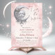 Estamos sobre a lua, elegante e luxuoso convite para chás de fraldas celestiais em cinzas cor-de-rosa e prata com uma lua adorável e o rosto do bebê, diamantes e poeira estelar. O convite para chá de fraldas de menina é totalmente editável, personalize facilmente todo o texto. Excelente para a festa do chá de fraldas o ano inteiro. - Kate Eden Art