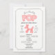 Um convite de chá de fraldas com ilustração de um animal de balão cor-de-rosa com texto decorativo "Ela está prestes a POP" Personalize o texto da cinza com detalhes da sua ocasião.
