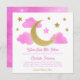 Ponha o tom para uma celebração sonhadora com este convite para o chá de fraldas "Sobre a Lua" a rosa e ouro brilhante. Com nuvens de aquarelas, estrelas de ouro e uma lua crescente brilhante, este convite é perfeito para honrar uma menina no caminho. Totalmente personalizável com seus detalhes de evento, é ideal para chás de fraldas celestiais, de lua e estrelas ou de temas cor-de-rosa e ouro. Coordenar com decoração do partido correspondente, favores e sinalização no cheio Sobre a Lua.