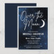 Sobre os convites de festas chás de panela da lua em cores azul marinho, branca e prateada. A festa de temas celestiais é alimentada com lua e estrelas num fundo de galáxia para celebrar a futura noiva e a Sra.