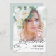 O convite para festa de formatura de fotos simples e chic apresenta seu retrato de mais velho ou foto de graduação favoritos, bordado por uma banda branca espessa ao longo do fundo, com "formando" sobreposto em um roteiro elegante de caligrafia. Personalize com seu nome, ano de aula e escola embaixo, e adicione seus detalhes de convite de festa de formatura ao verso em uma cinza verde-pastel gelada.