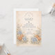 This romantic wedding design features soft blue and peach florals arranged in a delicate garden composition. Inspired by wildflowers and classic botanical illustrations, the artwork blends muted neutrals with airy florals for a timeless, refined look. The elegant layout and gentle color palette make it ideal for couples planning a nature-inspired wedding with a graceful, understated aesthetic that feels both modern and enduring.
