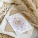 Designed to feel dreamy and timeless, this baby shower invitation features a gold bassinet, blush watercolor accents, and soft neutral florals. Elegant, sweet, and perfectly coordinated — it sets the tone for a beautiful celebration welcoming your little one with love.