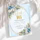 Convites Soft Dusty Blue Floral Gold Sweet Sixteen Invite