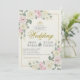 The floral accents frame a delicate gold foil-style border and a sophisticated script font for the word "Wedding." This classic and timeless design is perfect for a spring, summer, or garden-themed wedding, or for any couple who loves soft, pastel colors and a touch of vintage romance.