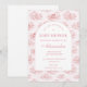 Celebrate a timeless and romantic baby shower with this elegant pink toile design, featuring delicate vintage countryside illustrations in soft blush tones. The refined arch layout creates a beautiful focal point for your event details, blending classic European charm with a modern, feminine aesthetic. Perfect for a chic, storybook-inspired celebration, this design feels both graceful and effortlessly sophisticated—ideal for creating a memorable and stylish gathering.