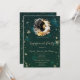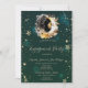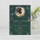 Sol e lua de ouro celestial, flores e estrelas sobre fundo verde. Belo convite que pode ser personalizado com seu nome. Selecione o botão "personalizar" para alterar o estilo, a cor e o tamanho da fonte.