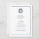 Convites de casamento celestiais azuis e brancos impressos com um elemento de sol e lua azul-marinho e branco. O sol é frequentemente reconhecido como um símbolo de força e poder masculinos. A lua está associada à mulher em muitas culturas, muitas vezes na forma de uma deusa. Este é um lindo convite de casamento que mostra a união de suas energias no dia do seu casamento. O convite reverte para um design de papel de ágata azul no verso.