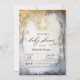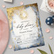 Sol e lua de ouro celestial e estrelas sobre fundo de aquarela. Esses convites para chuveiros de bebês são facilmente personalizados para seu evento simplesmente adicionando seus detalhes.