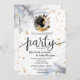 Sol e lua de ouro celestial e estrelas sobre fundo de aquarela. Bela festa de noivado pode ser personalizada com seu nome. Selecione o botão "personalizar" para alterar o estilo, a cor e o tamanho da fonte.