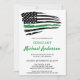 Convites de aposentadoria militar de linha verde fina ou Convites de festas militares que saem. Estes convites de festas do Exército da Linha Verde fina são perfeitos para uma aposentadoria militar, destacamentos militares são enviados, bem-vindos militares para a celebração de casa, graduação militar e soldados indo embora para a festa. A bandeira fina da linha verde representa todos os militares, militares, proteção de fronteiras, patrulha de fronteira, oficial de conservação, guarda florestal, diretor de jogos, polícia federal. Personalize este convite da bandeira militar com o evento, nome e detalhes da festa dos soldados. Veja nossa coleção para combinar presentes de aposentadoria militar, presentes de graduação militar, favoritos para festas e suprimentos. COPYRIGHT © 2021 Judy Burrows, Black Dog Art - Todos Os Direitos Reservados. Convite Militar do Soldado de Reforma de Linha Verde Fino