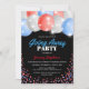 Convite de festa militar patriótica para celebrar um soldado que vai embora para o serviço nacional, ou para celebrar sua volta para casa. Com balões vermelhos, brancos e azuis, brilho de festa, luzes de corda e um modelo de festa moderno.