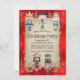 Este convite de festas de Natal apresenta um tema clássico do soldado de brinquedo nutcracker. Cinco bolachas de estilo de safra diferentes são impressas em um design de pintura a aquarela, e acentuadas com ramos de inverno e flocos de neve. Três são impressas ao longo da parte superior e duas na parte inferior. Um ornamentado e um quadro dourado vintage borda a parte de texto. Flocos de neve brancos caem sobre um fundo vermelho brilhante.