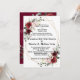O cartão de convite para o casamento floral, elegante e moderno, com cor de água geométrica romântica apresenta um buquê de burgundy / marsala, cor-de-rosa-púrpura, cor de água de pêssego com folhagem correspondente. Perfeito para um casamento no outono/no meio do verão. Por favor, encontre mais designs e variações na minha loja de "blisswedingpaperie". E sinta-se à vontade para contactar-me para mais personalizações ou itens correspondentes