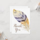 Linda pena de aquarela em tons roxos e castanhos claros com o texto "Obrigado" na escrita do rico moderno