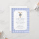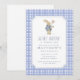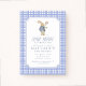 First birthday invitation featuring a sweet bunny illustration and classic blue gingham pattern. This “Some Bunny Is Turning One” birthday invitation is perfect for a boy’s first birthday party, spring birthday celebration, or bunny-themed birthday event.