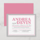 Convites apenas para recepção de casamento com um design de tipografia rosa e cinza. (Devido à precisão com que este design está alinhado, é aconselhável clicar no botão laranja "Personalize!" para mover e redimensionar o texto conforme necessário.) Estes convites são usados quando o casal tem um casamento em um destino distante ou uma pequena cerimônia privada, e apenas convida os convidados para a celebração pós-casamento, a recepção.