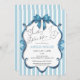 Something Blue Before I Do Blue Bow Bridal Shower Invitation. Celebrate the bride-to-be with this charming "Something Blue before I Do" bridal shower invitation featuring a beautiful dusty blue bow and elegant script typography. The design is set against a delicate pale blue and white striped background, creating a sweet and classic aesthetic. A beautiful, hand-painted dusty blue bow adorns the top, adding a touch of delicate charm. This invitation is perfect for a spring and summer bridal showers. Make her special day even more memorable with this delightful announcement.
