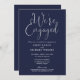 Este convite de festa de noivado de script elegante azul-marinho pode ser personalizado com todas as suas informações especiais de evento. Projetado por Thisnotme©