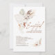 Estamos engajados - convites de festa de noivado com a bela grama pampas de matizes macios, folhas de palma secas, orquídeas brancas e flores terracottas brilhantes.