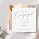 Estamos envolvidos no Simple Photo Black and White Noivado Invitation. Anuncie, de forma elegante, a sua noivado aos seus amigos e familiares com este simples mas elegante convite para a festa de noivado 'Estamos noivos', com um design de escrita negra minimalista sobre um fundo branco comum, com uma fotografia personalizada de vocês dois atrás. Este noivado dá uma sensação moderna e minimalista, perfeita para qualquer casamento simples e elegante. Este convite mínimo, preto e branco, irá dar o tom para qualquer simples e subestimado cenário de noivado de casamento rodeado por delicadas decorações e flores, e decor de casamento preto e branco. Uma adição perfeita a qualquer celebração de casamento simples, mínima ou elegante. O Coletivo de Domingo © por Rachel Hannah Gee
