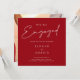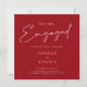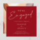 Estamos envolvidos no Simple Photo Crimson Red Noivado Invitation. Anuncie, de forma elegante, a sua noivado aos seus amigos e familiares com este simples mas elegante convite para a festa de noivado 'Estamos noivos', com um design de guião branco minimalista sobre um fundo vermelho de fogo, com uma fotografia personalizada de vocês dois atrás. Este noivado dá uma sensação moderna e minimalista, perfeita para qualquer casamento simples e elegante. Este mínimo convite para noivados vermelhos irá dar o tom para qualquer simples e subestimado cenário de noivado de casamento rodeado por delicadas decorações e flores, e um castigo vermelho de casamento correspondente. Uma adição perfeita a qualquer celebração de casamento simples, mínima ou elegante.