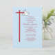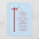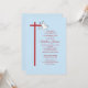 Este simples e elegante Convite de Confirmação para seu filho é totalmente personalizável. Adicione detalhes e nome para esse evento especial cristão. Colocada sobre um fundo azul claro, esta cruz vermelha e o texto se destacam com a cor Confirmação e desativa a pomba branca.