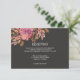 Cartão de recepção de convites para casamentos outono elegantes e românticos em cores clássicas de queda apresentam cores aquáticas no outono e folhas de flores no canto superior esquerdo, com os detalhes desejados em letras brancas clássicas contra um incrível fundo escuro chic, Personalize com seus detalhes de recepção de casamento, incluindo horário, local, endereço e quaisquer informações adicionais como transporte ou estacionamento. Cartões inverso a contrastando cor forte pálida. Coordenar com a coleção e acessórios do Autumn Dream