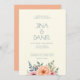 Vamos dá vida à sua história de amor com o nosso convite de "Peach and Petal Dream". Este design apresenta uma mistura suave de florais de cor-de-rosa suave e cor-de-água pêssego, criando um sentimento romântico e elegante. As flores delicadas estão organizadas graciosamente no fundo do cartão, perfeito para um casamento de jardim ou primavera. Trabalharemos com você para personalizar o texto e o layout, assegurando que cada detalhe seja exatamente como você previu.