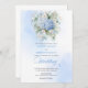 Set the tone for a stylish and unforgettable celebration with this watercolor blue and gold wedding invitation, designed around today’s most trendy wedding color palette. Featuring soft pastel, powder, light, and pale blue hydrangeas, paired with fresh eucalyptus greenery and elegant gold floral accents, this design captures modern romance with timeless appeal.