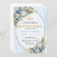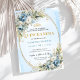 Ideal for classic, modern, garden, or elegant Quinceañera themes, this invitation combines delicate blue hues with warm gold details to achieve a look that feels both sophisticated and youthful. The greenery and eucalyptus bring freshness and balance, while the gold accents add just the right amount of sparkle for a meaningful 15th birthday celebration. Whether you are planning a formal Quinceañera, a traditional fiesta, or an intimate family gathering, this invitation sets a beautiful and memorable tone.