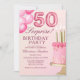 Celebrate in style with this elegant adult 50th birthday invitation featuring a beautiful pink cake and fun pink balloon numbers. Perfect for an elegant and memorable celebration, this design adds a touch of fun and sophistication to your special day. Ideal for women looking to celebrate a milestone birthday in style!