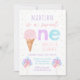 Este convite bonito apresenta um cone de sorvete e balões em cores pastel do arco-íris com faux gold foil confetti.