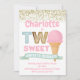 Convites Sorvete Dois segundo aniversário Dourado Suave De