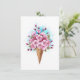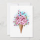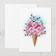 Cone de waffle doce com cereja japonesa rosa e fresca floresce em fundo branco com listras de cor azul. Cereja japonesa rosa.