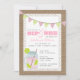 Um sorvo e vê o convite para o bebé com um esquema de cores cor-de-rosa e verde. A estamenha é guingão verde e damasco cor-de-rosa. A ilustração de um vidro da limonada cor-de-rosa com limões saiu no fundo. O fundo é serapilheira inspirada.