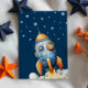 Set in a dreamy cosmic palette of navy blue and orange this gender-neutral invitation is perfect for both boys and girls who love adventure. The cheerful “3…2…1… Blast Off!” theme adds a fun, imaginative touch that will excite every little astronaut and guest alike.