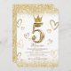 Convites Sparkles Dourado Princesa Coroa 5 Aniversário