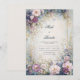 Transport your guests to a realm of moonlit magic with this breathtaking botanical masterpiece. The composition features a lush array of purple bloom, lavender petal, and soft pink blossom clusters, intricately woven with shimmering gold sprig and leaf motifs. A double-line gold frame borders a misty, ethereal cream center that sparkles with glowing stardust bokeh, while the edges transition into a deep, moody indigo watercolor texture. This wedding invitation is a premier choice for a celestial evening ceremony, a romantic spring garden event, or an opulent fairytale gala. It ensures your celebration is introduced with a sense of high-end artistic drama and natural grace from the moment the envelope is opened.