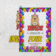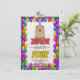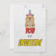 Front: Gleeful capy with cake and hat, punchy "[Name] is Turning [Age]" in bold, bubbly fonts, balloon border bursting with energy.