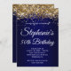 Convites Sparkly Gold Glitter Navy Gradient 50th Birthday