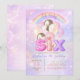 Celebrate a magical sixth birthday with this sparkling pink balloon birthday invitation! Featuring glitter-style “Six” lettering, soft pastel balloons, and a dreamy starry background, this invitation is perfect for a fun, cheerful, and unforgettable birthday party.